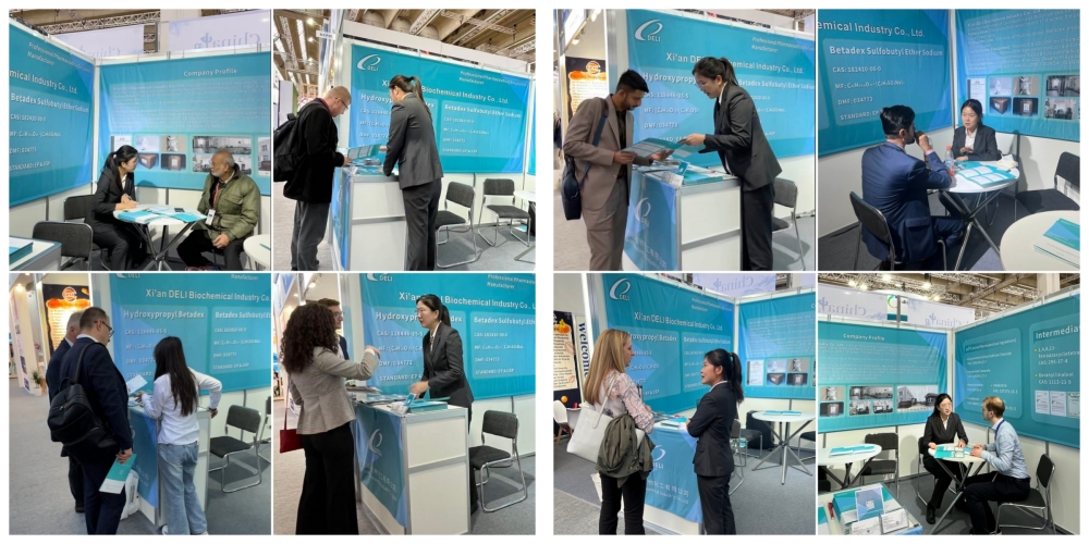 Xi'an Deli Industry Biochemical Co., Ltd. in Booth 8.0P30 suas recentissimas innovationes superbe ostendit, exhibens amplitudinem productorum incluso Hydroxypropyl Betadex (HPBCD), Betadex Sulfobutyl Ether Sodium (SBECD), Glucosaminum Sulfate Sodium Chloride, Menattrinone et Icodextrinone.