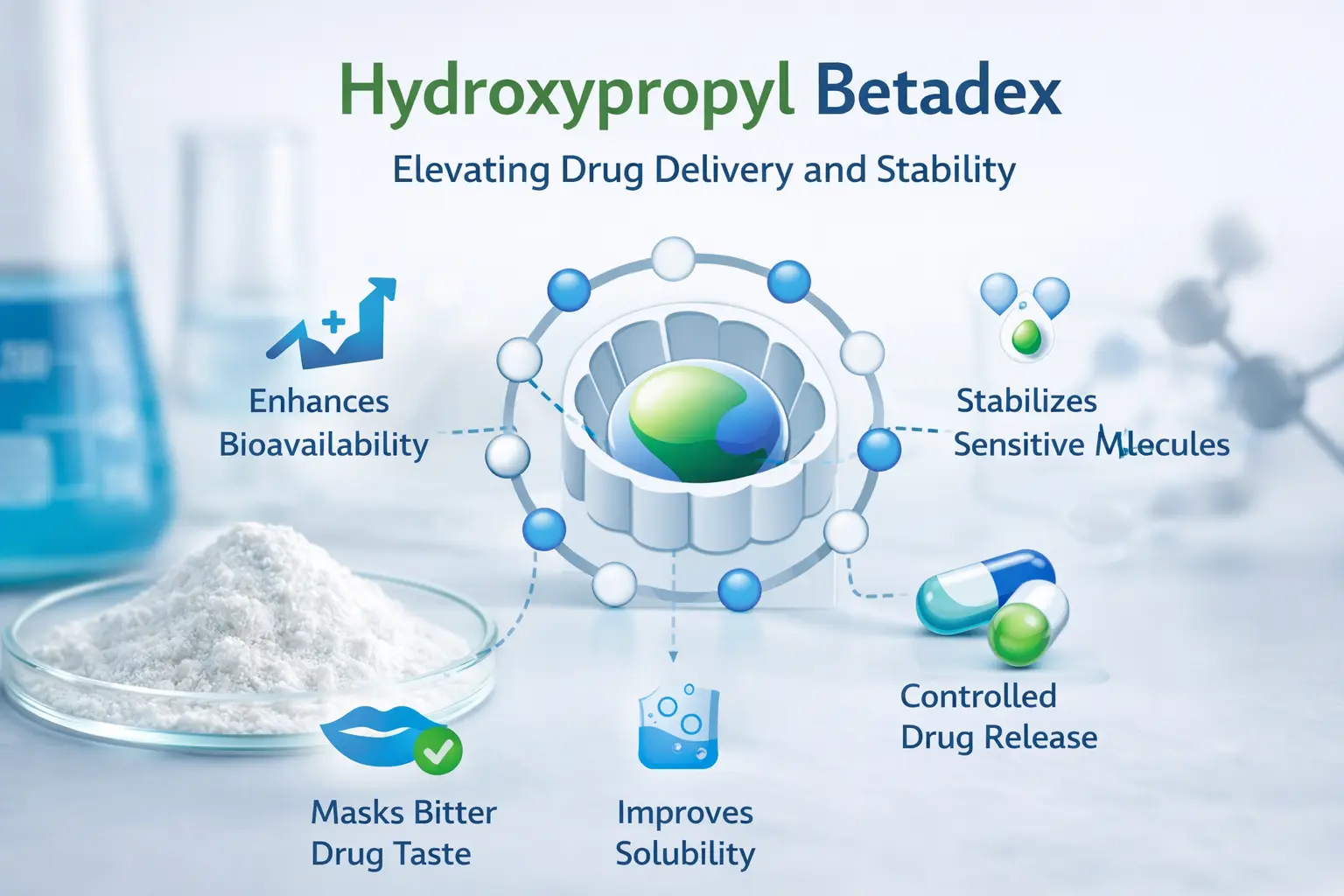 Hydroxypropyl Betadexest medicamentum revolutionarium medicinale, quod medicamenta vertit quae bene in formulas optime laborantes non absolvunt. Multae magnae res sunt circa hanc derivationem cyclodextrin mutatam, ut melior medicamentum solubilitas, melior bioavailability et melior stabilitas. Capsula hypothetica technologiae inclusionem complexum stabilem facit quae circa problemata quae cum aliis formulis ascendunt fiunt. Scientistae in pharmaceutica industria toto orbe terrarum hoc polymerum cursorium flexibili utuntur ad emendandos modos medicamentos partus, toxicitatem inferiores, et congruentes proventus medicinales pro usibus oralibus et injectbilibus.
